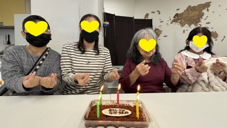 お誕生日の利用者さんたち。みんな笑顔でした♪