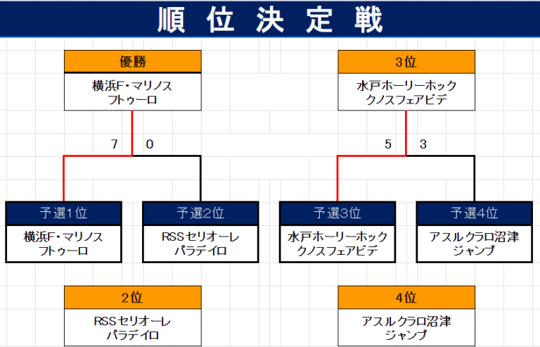 ③リーグ戦の「1位と2位」による「優勝決定戦」が行われ、勝利チームの優勝