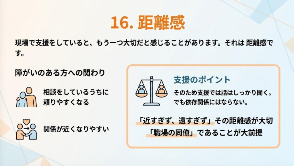 最後にお伝えしたのが、支援における「距離感」です。