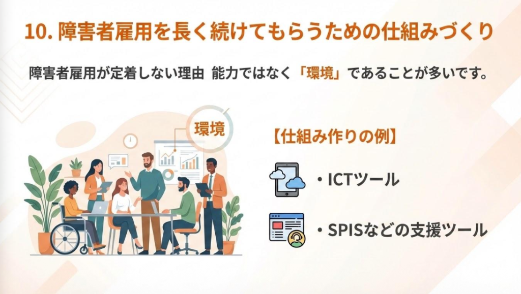 障害者雇用が定着しない理由は、能力ではなく「環境」にあることが多いと言われています。