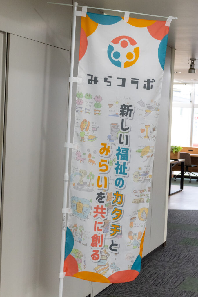 ちなみに、余談にはなりますがみらコラボの「のぼり」。その背景には利用者さんが描いてくれたイラストを掲載しています!